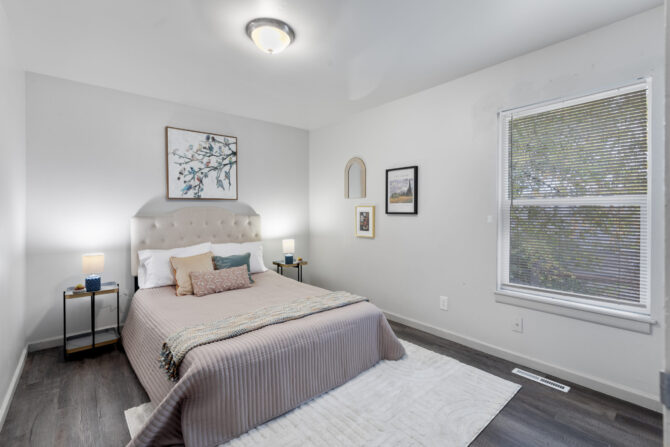 Havens Homes purchased this property in November 2024.  It consists of two duplexes on the same lot.  One building (511 and 513) has two identical three-bedroom, one-bathroom condos, and the other building (515 and 517) has two identical two-bedroom, one-bathroom condos.  Although the buildings were built in 1971, almost everything about them is less than five years old – roof, flooring, bathrooms, light fixtures, interior paint, and exterior siding were all updated in 2020 or 2021.  Havens Homes has further improved the property by installing new furnaces, re-grading the landscaping and installing a French drain to improve water flow, and adding a new paved off-street parking lot.